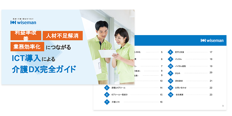 ICT導入による介護DX完全ガイド 無料ダウンロード 介護業におけるDXやICT導入に人材不足や収益改善に課題を持っていて具体的な業務改善やICT導入による効果や、導入の進め方について解説しています。 対象 介護業界におけるDXやICT導入について知りたい、具体的な進め方がわからない等の課題をお持ちの方。 この資料でわかること 介護業界の現状課題からDXの必要性 DXによる現場と経営への効果 現場で導入されているICTツール ICT導入の進め方