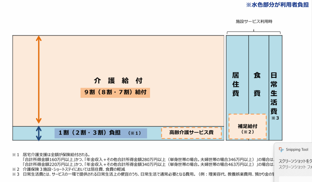 持続可能な介護保険制度を実現するうえで、ケアプランの有料化に賛同する声は少なくありません。そもそも、介護保険の利用者負担と国からの給付は以下の割合で設定されていました。