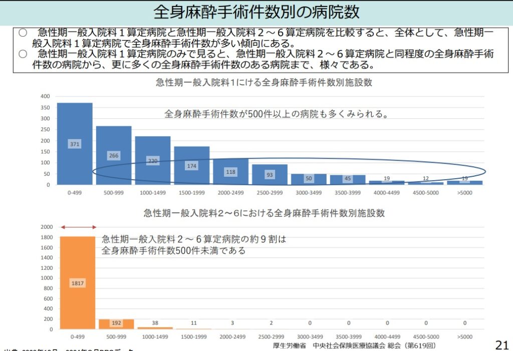 そこで診療報酬では救急搬送受入件数と全身麻酔手術件数の実績で基準を設け、手厚い医師の配置等を行っている急性期一般入院料1の新たな施設基準を設けて、評価を手厚くしていく方向になる見通しだ(図1、図2)。