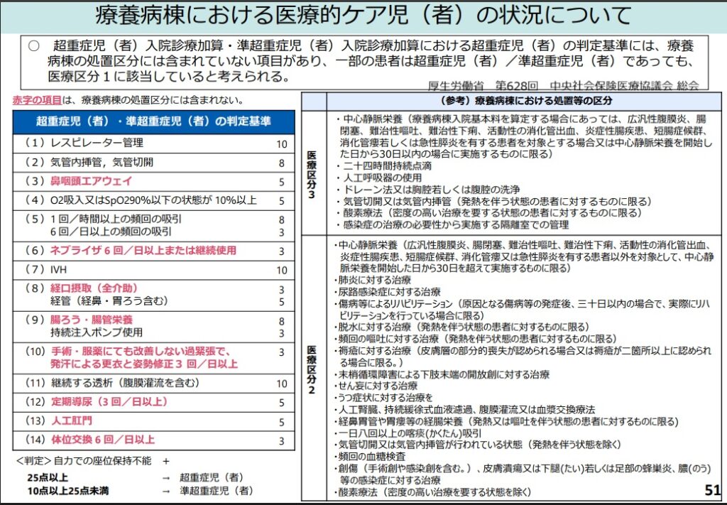 療養病棟に入院する医療的ケア児の医療区分の見直しについて