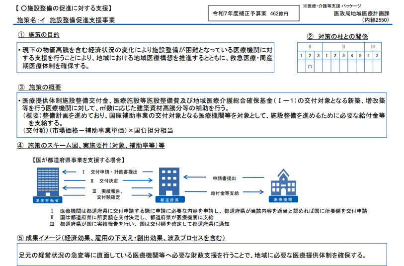 令和7年度補正予算より、病院に関する主な支援内容を確認