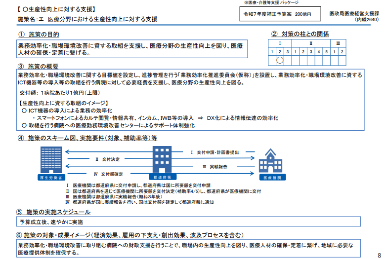 令和7年度補正予算より、病院に関する主な支援内容を確認