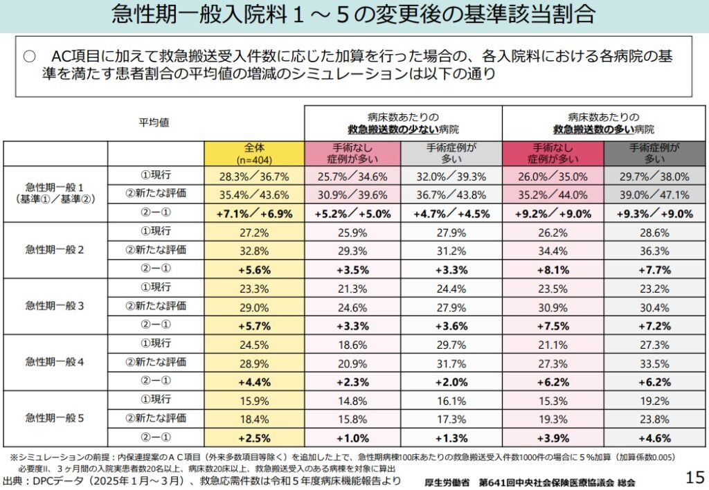 手術無し症例の多い病棟で重症者割合が大きく増える見直しへ。課題は、該当患者割合の基準値の設定