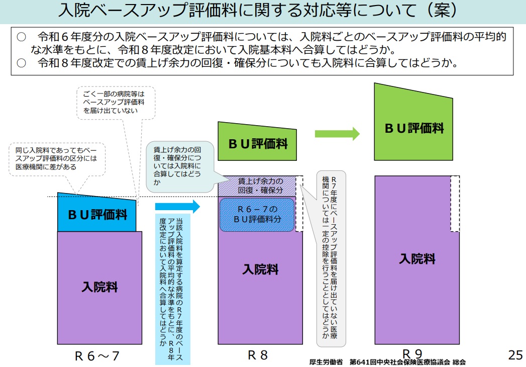 令和7年1月14日、第641回中央社会保険医療協議会が開催され、重症度、医療・看護必要度における内科系症例の受入れを底上げする評価の考え方、賃上げに対する対応の方向性について明確にされている。