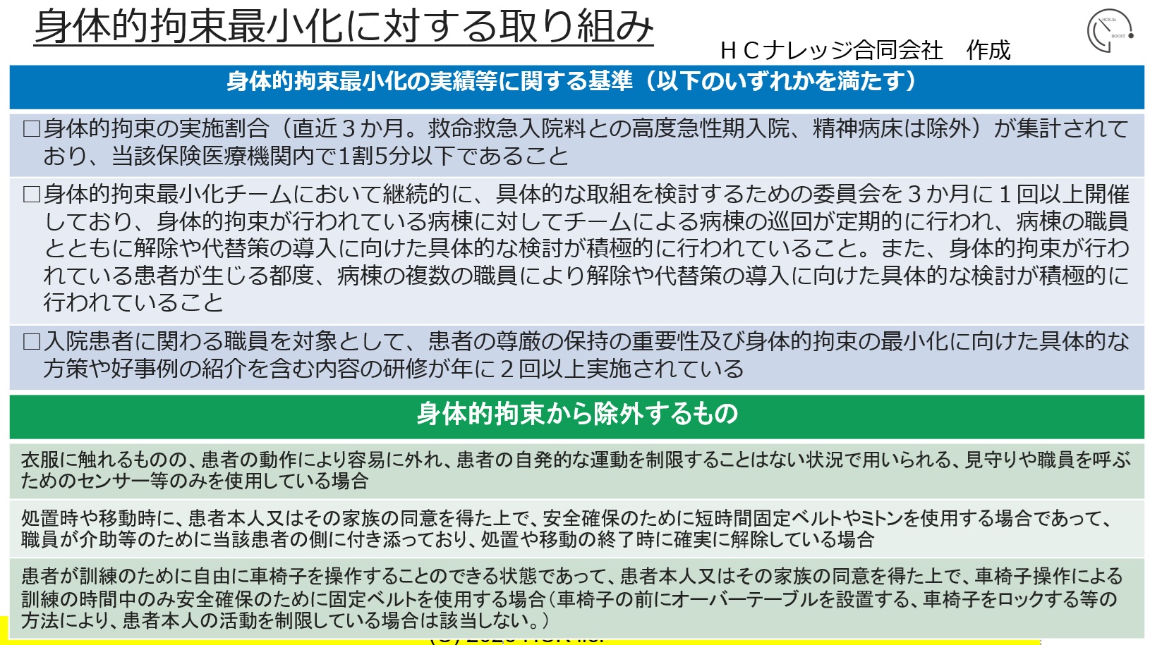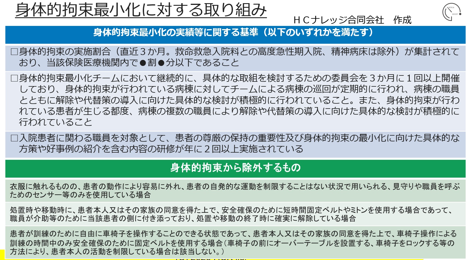 身体的拘束の除外項目が明確に。病院全体としての身体的拘束最小化に向けた「姿勢」を。