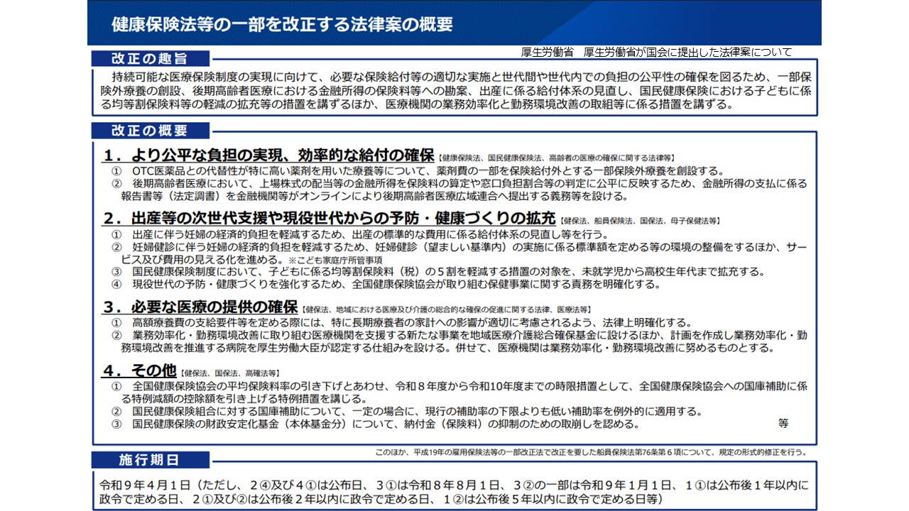 今回の特別国会では、健康保険法等に関する法律案が審議される。OTC類似薬、高額療養費といった患者負担に関するもの、医療DXの推進といった医療機関における働き方改革のさらなる推進に関するものについて審議される(図1)が、患者、とりわけ後期高齢者の保険料率・窓口負担が今後見直される方向にあることが読み解ける。ここでは、後期高齢者医療制度の見直しに焦点をあてて確認し、今後の対応策について考えたい。