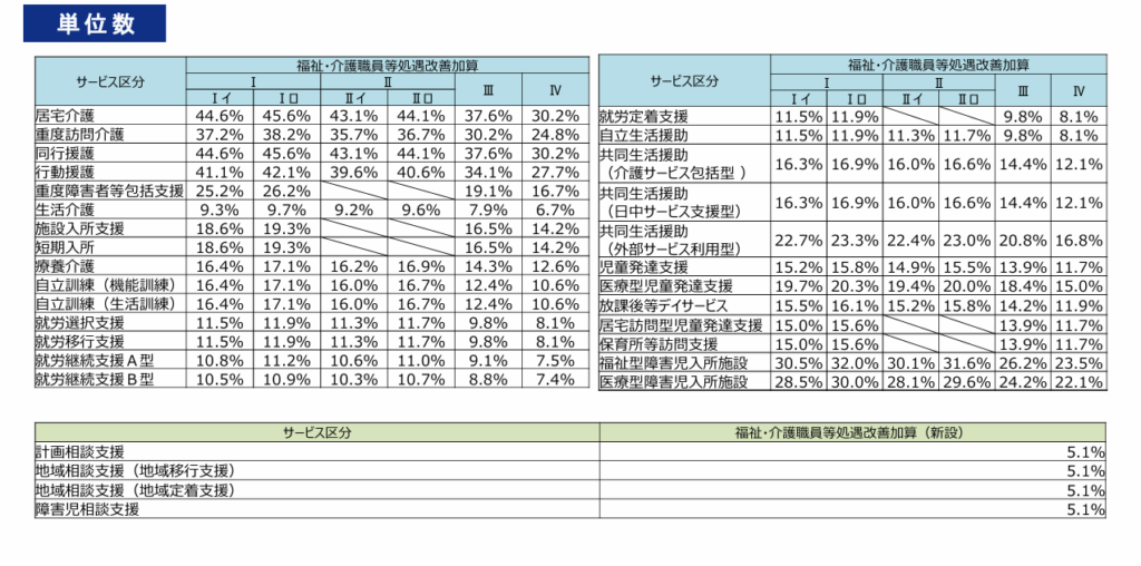 - 処遇改善加算の対象外だった計画相談支援、障害児相談支援及び地域相談支援に処遇改善加算を新設する