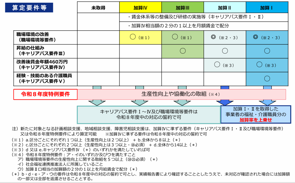 2026年度の臨時報酬改定でもっとも注目されているのが、処遇改善加算の大幅な拡充です。