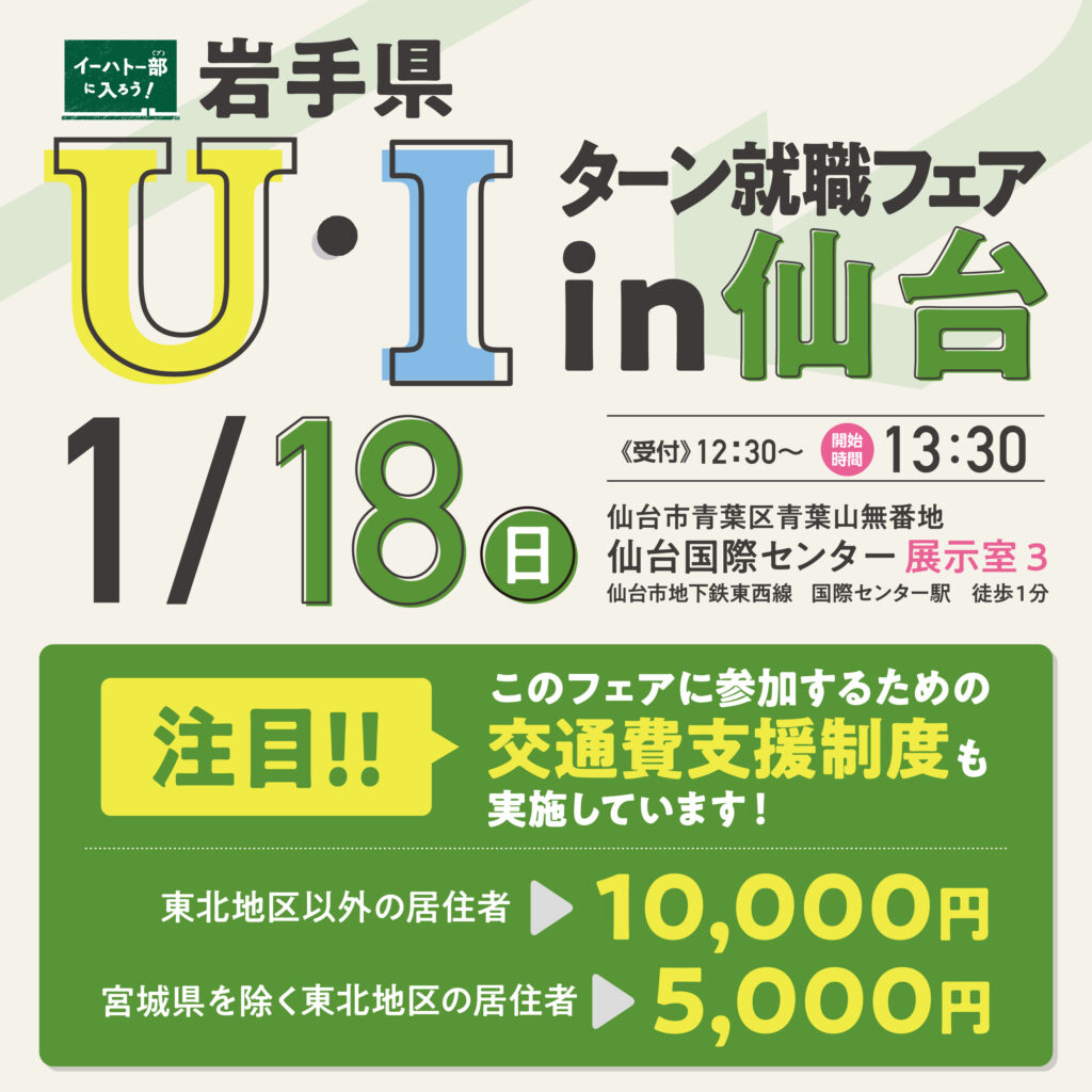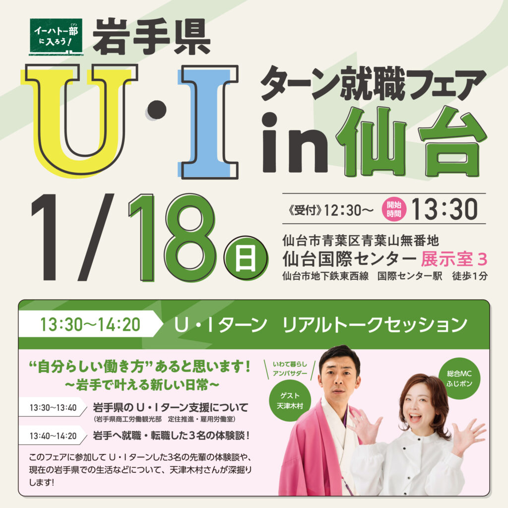 2026年1月18日(日)開催の「岩手県U・Iターン就職フェアin仙台」に参加いたします。
